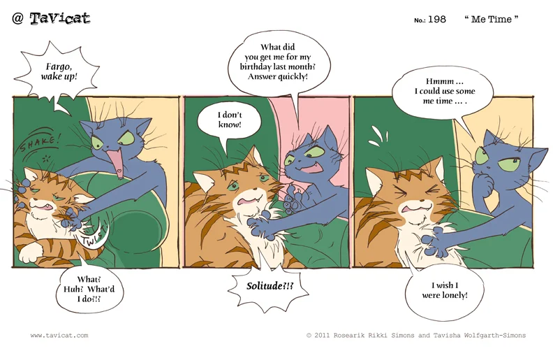 First Published on Thursday, May 26, 2011 Comment - Go to the Newest @Tavicat Comic - Go to the First @Tavicat Comic - Go to the @Tavicat Archive - Download Meep Chuffeting for Cats, the @Tavicat Theme Song